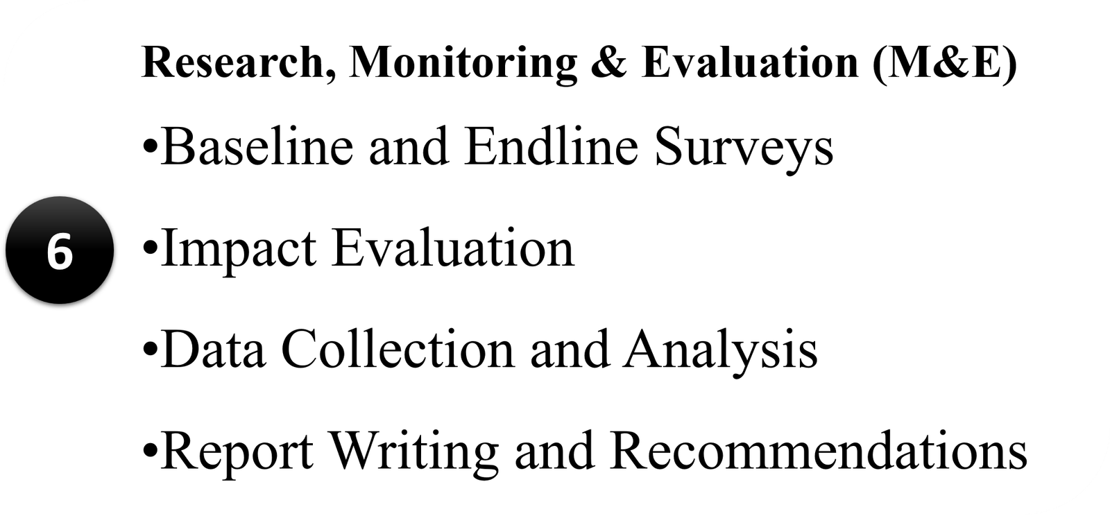 We undertake third-party monitoring and evaluation assignments for international
